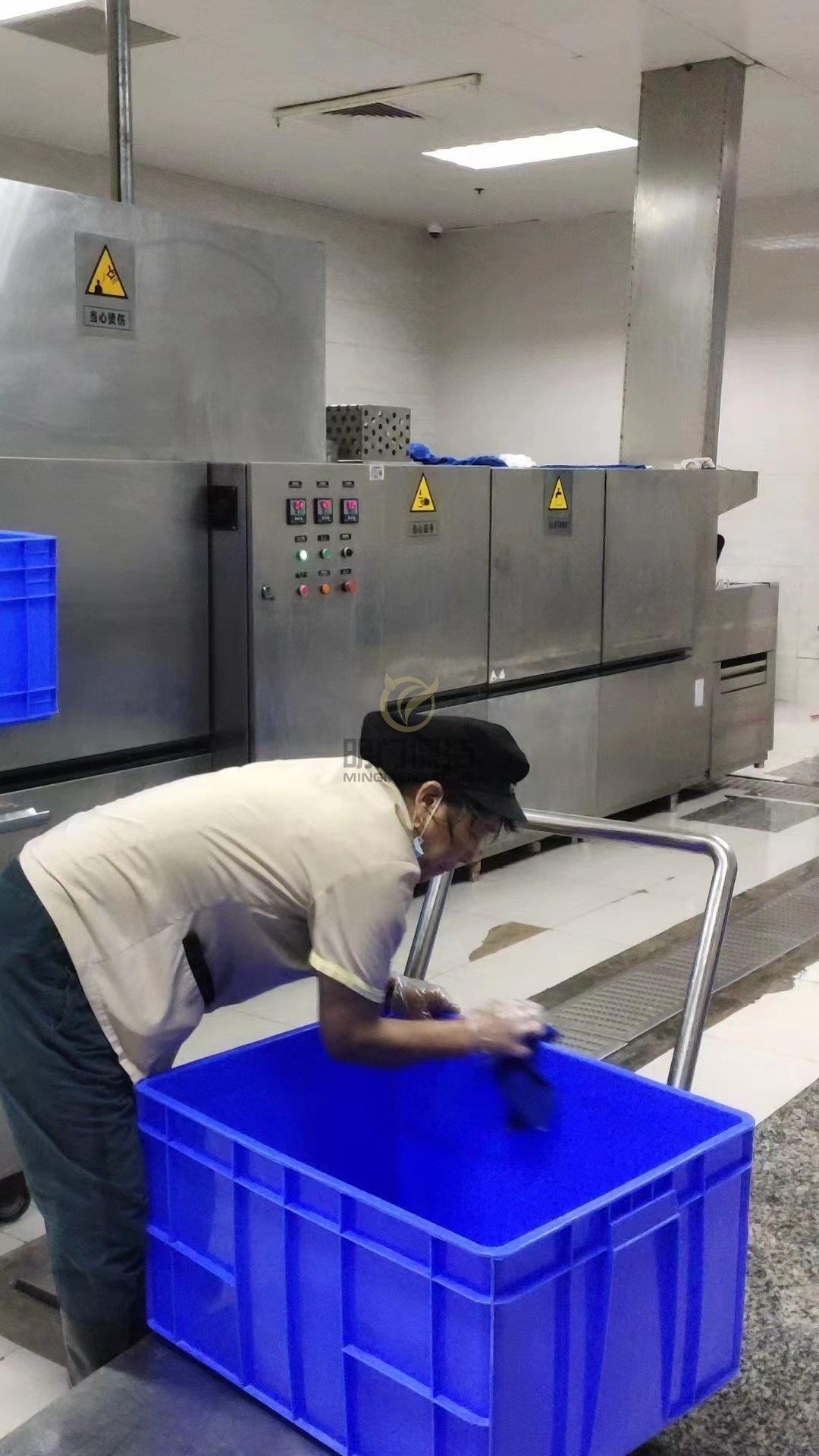 3、保证所有盛装干净餐具的餐具筐是干净的。