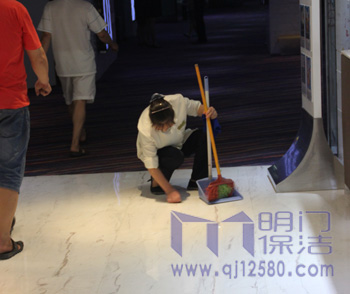 电影院保洁外包托管服务中正在打扫清洁的员工