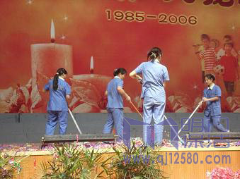 公司员工正在会场保洁外包服务