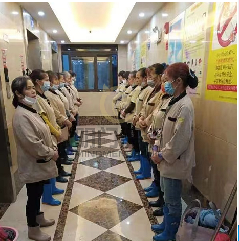 一线的员工大都是叔叔阿姨,疫情期间给他们带来了多方面不便与挑战,她们有过迷茫和失落,但是依然每天坚守岗位做好清洁、消毒、培训好习惯。为了能打赢这场疫情阻击战、配合各项目的工作。有一些家人们被管控在项目上,还有一些家人们暂时放弃了家庭去了管控的项目等等。。。。。同时我司为了驻守在各个项目的家人们能够保证基本的正常生活外,公司也提供了补助。此刻,我们所有人都知道,此时的不见,只为疫情之后更好的相见。这场抗议之战,充分体现了明门的家人们有志一同,上下一心的团队精神。 在此致敬每一位明门的家人们,以及为疫情的一线人员。
