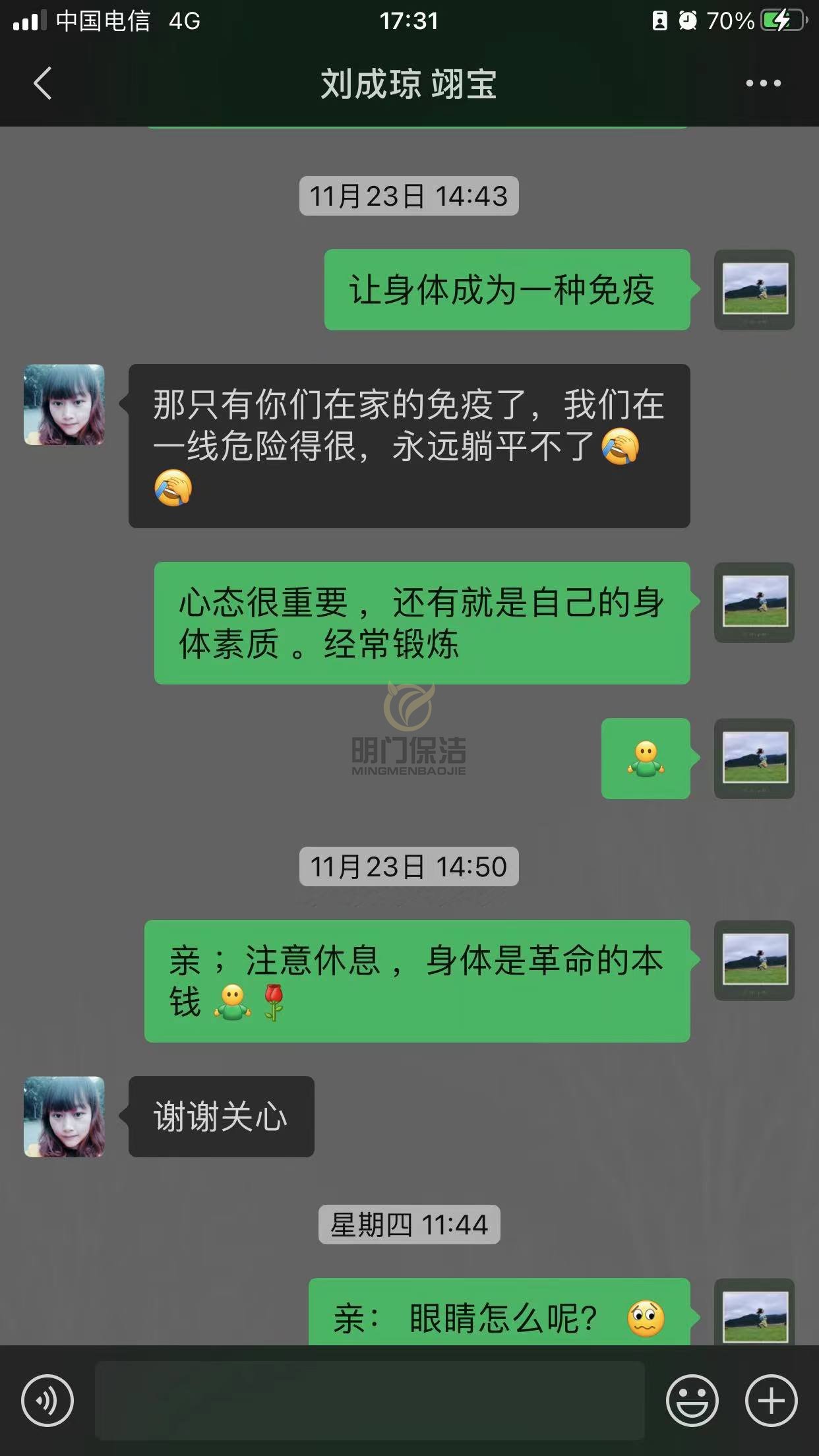 连日来,重庆新型冠状病毒感染的肺炎疫情时刻牵动着每一个人的心,在这场没有硝烟的战役中,重庆明门物业家人们,无论是厂区、食堂、宿舍、医院一线做清洁的还是后方支持团队“线上办公”都尽最大努力推进正常业务开展。隔离不分离,居家不停工,隔离病毒,但不隔离服务!