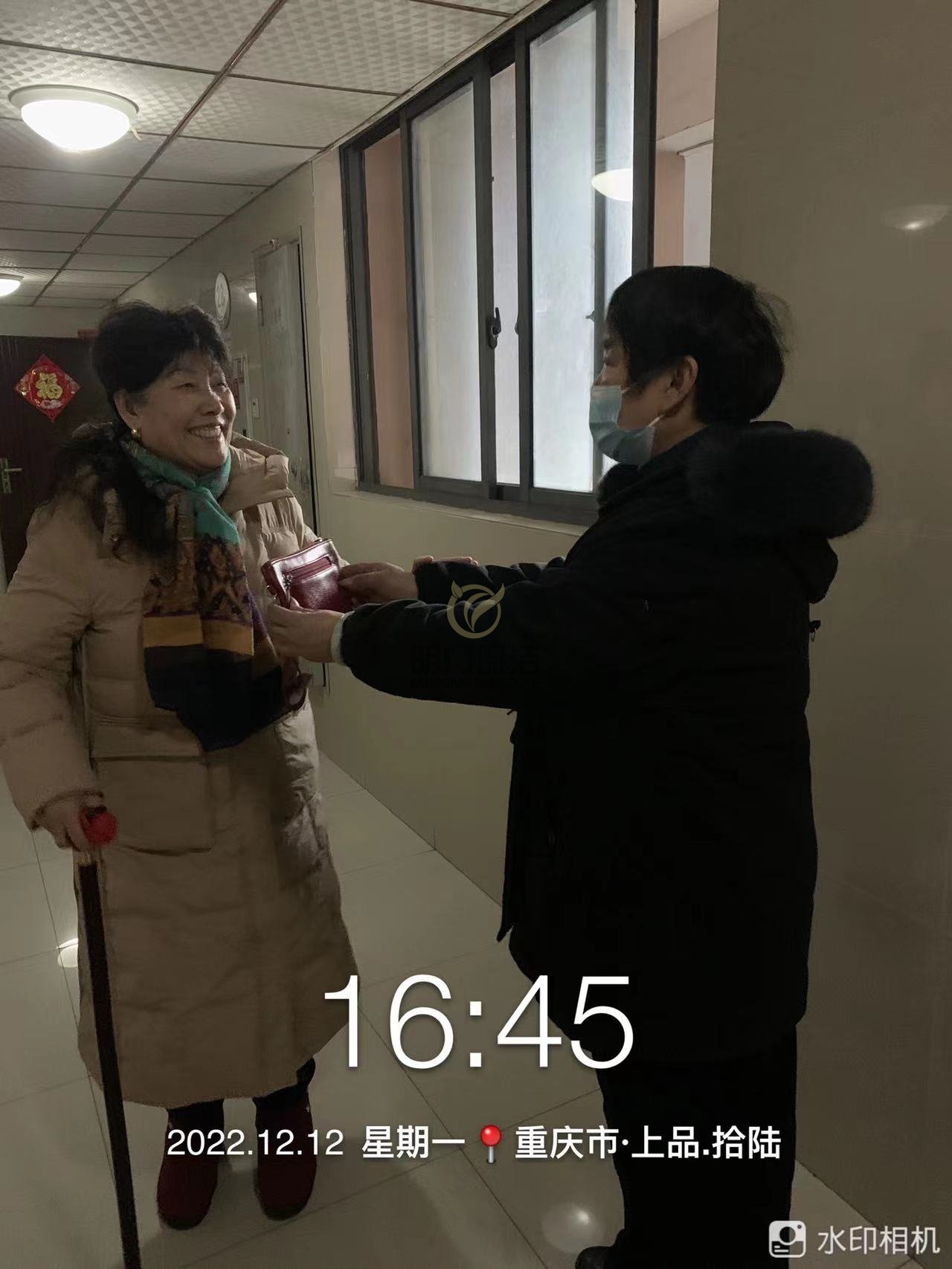 1212日下午,向大姐像往常一样巡查扫地,走到休闲区域时,看到椅子上面掉了一个红色的钱包。她心想丢失钱包的失主此刻一定非常着急,便立即将钱包上交给领班邓姐,领班邓姐拿到钱包第一时间交给物业前台,物业的工作人员通过微信群,大约半花了小时左右找到了失主,是小区123楼的刘阿姨,腿脚不方便。领班邓姐得知这个消息时说:“我帮刘阿姨拿送上去吧!当邓姐用双手帮钱包送到刘阿姨手上时,刘阿姨脸上也露出喜悦的微笑!