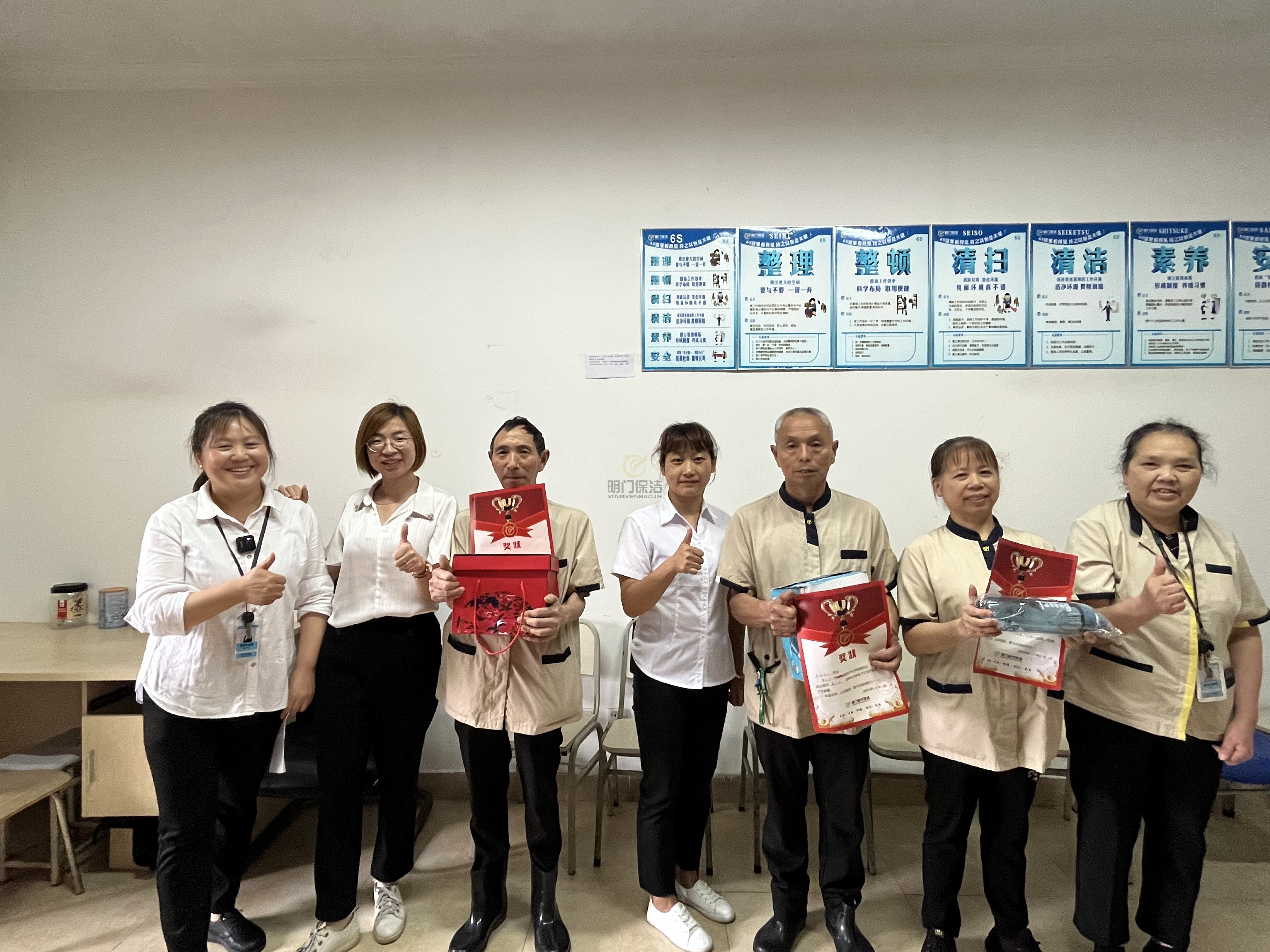 恭喜我们此次获奖的员工,他们体现了自身与公司的价值:乐于助人,相互帮助;在工作中认真负责,勇于付出,不计较得失;关心同事。增强了整个团队的凝聚力。当然,没有获奖的保洁叔叔阿姨们,继续坚持,努力吧!让自己的优点闪闪发光,下一次获奖的就是你噢!