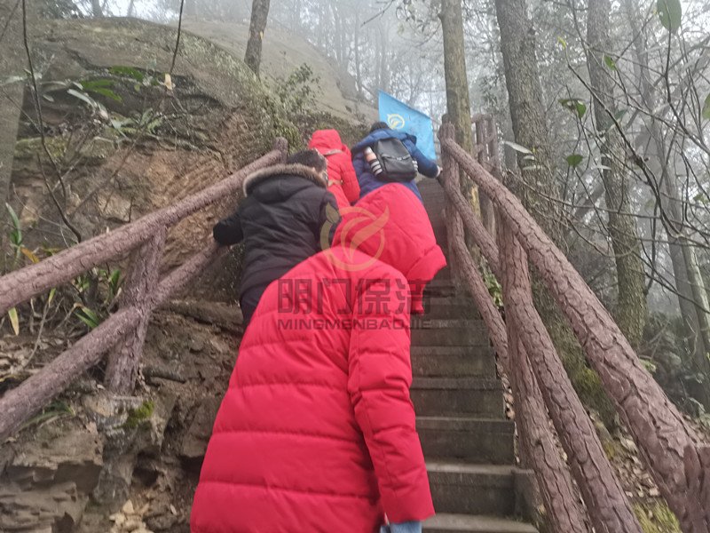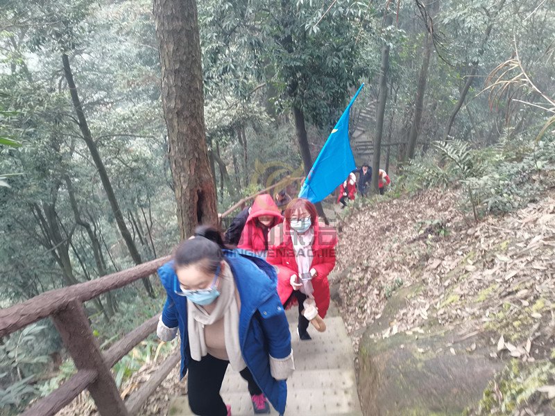 12月27日同事们早早就来到了我们统一汇合的地点,早上的天气雾蒙蒙的,冬天的风好像在热烈欢迎我们似的,使劲的吹着。我们也感受着大自然带给我们的礼物勇往前进。出发前由我们团队享有才子称号的黄主管举着旗子带领大家从山下出发。