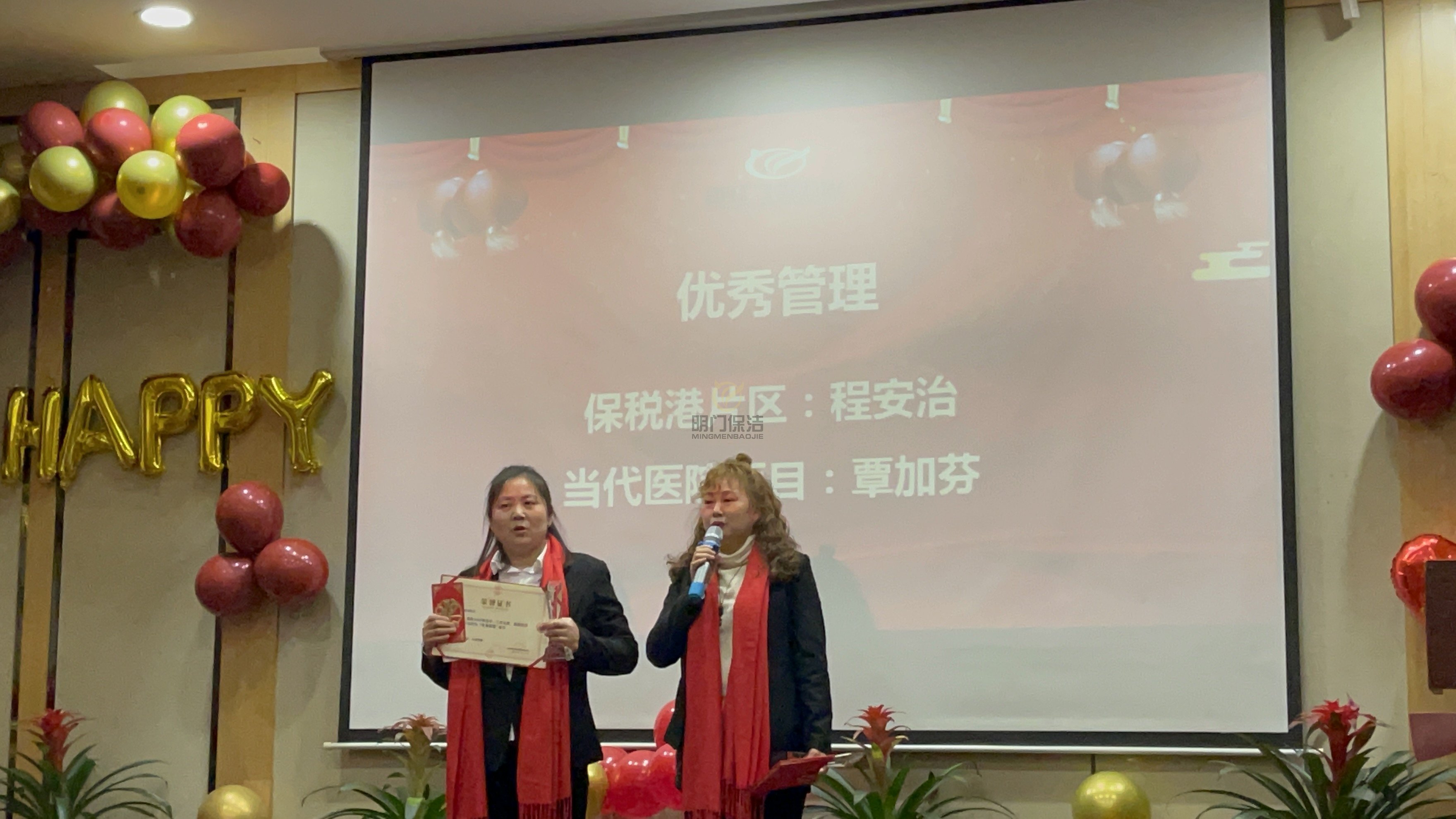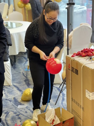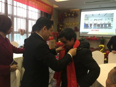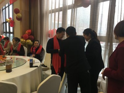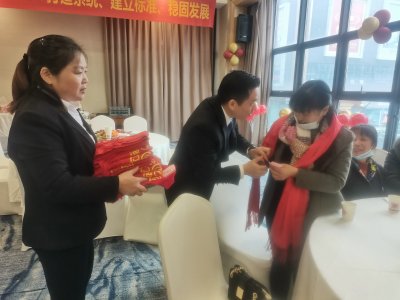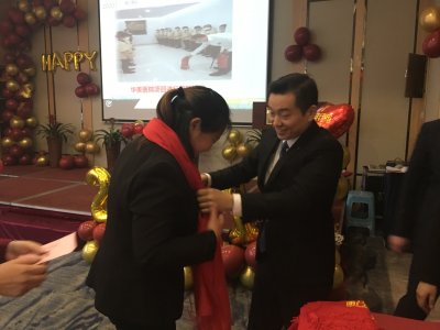 总经理亲自给家人们披带上年会伴手礼