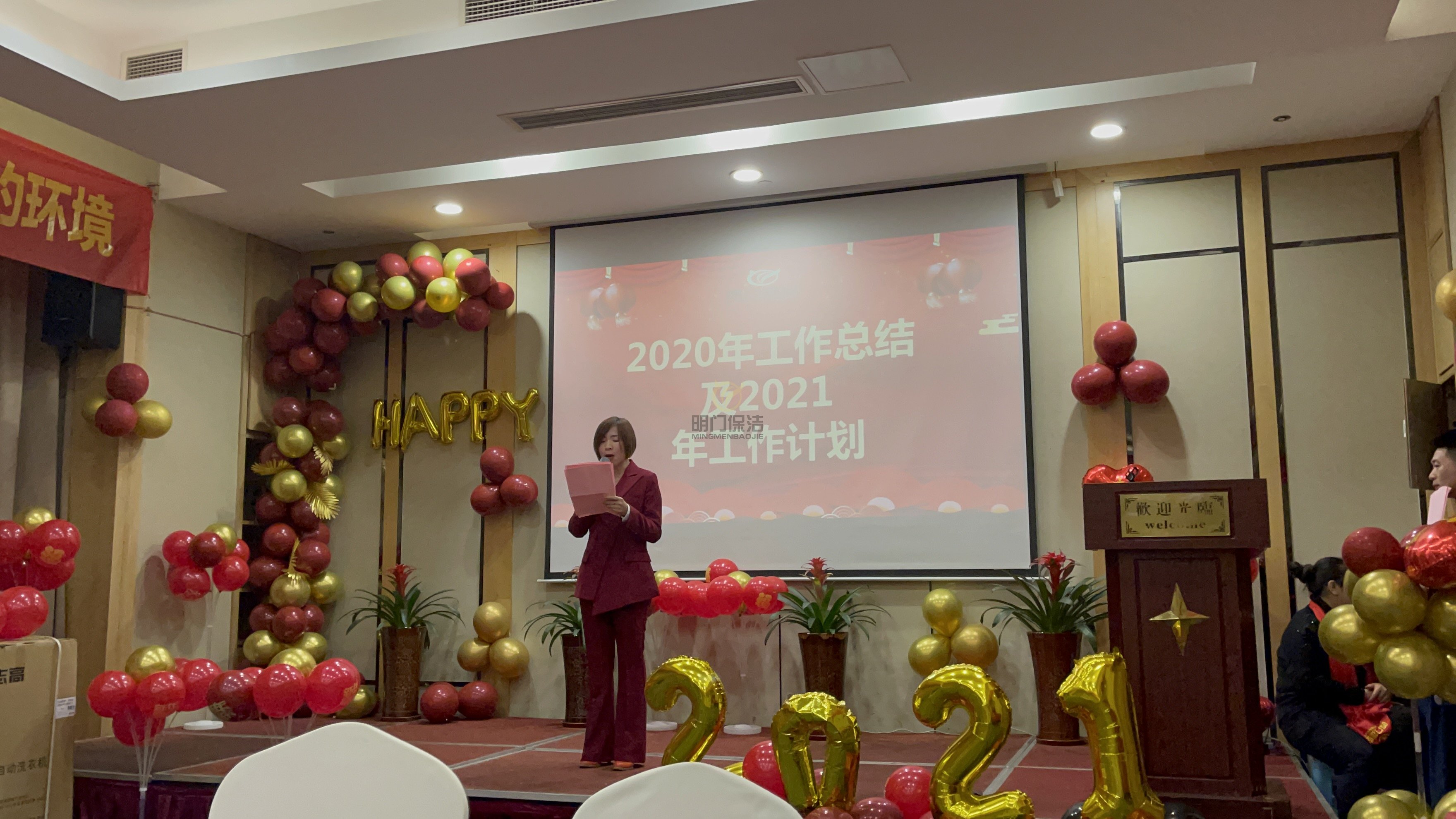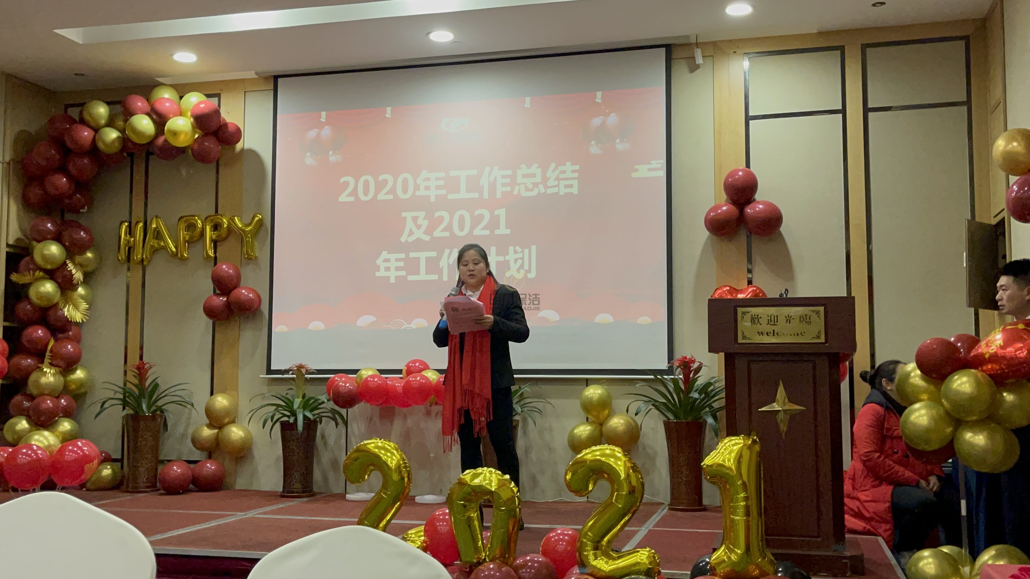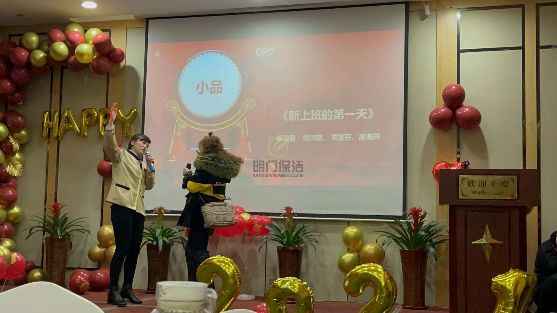 年会正式开始:主持人上台,总经理致开幕词
