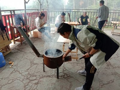 午餐后,大家坐下来闲聊休息,为下午体验童趣的活动做充分准备。