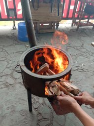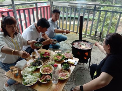 ,公司余总亲自动手烧火,不怕辛苦,体贴员工,让大家早一点吃到香喷喷的饭菜。