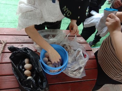 看,这就是森林之宝——鸡蛋,右边便是我们的战利品。