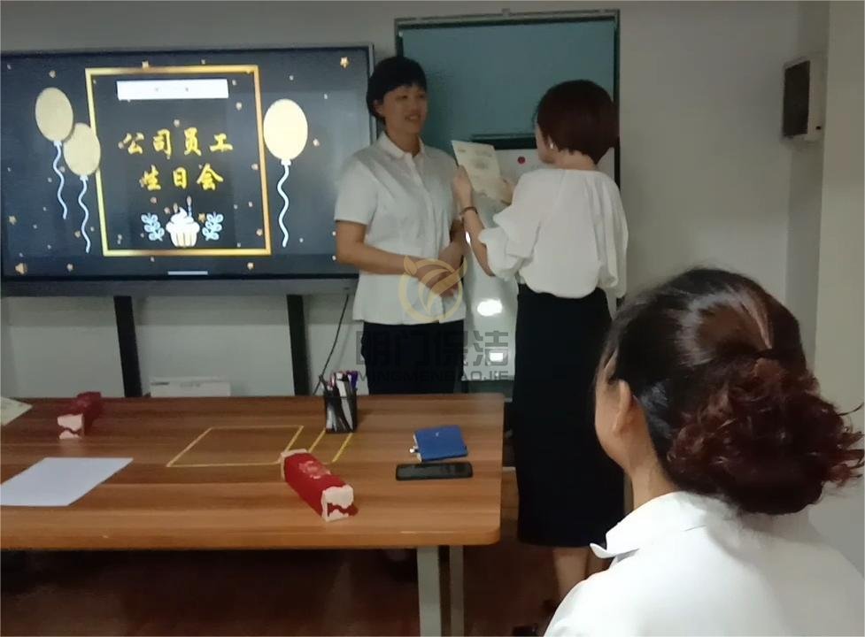 首先,公司领导给寿星,颁发生日贺卡以及礼品,并送上生日的祝福。