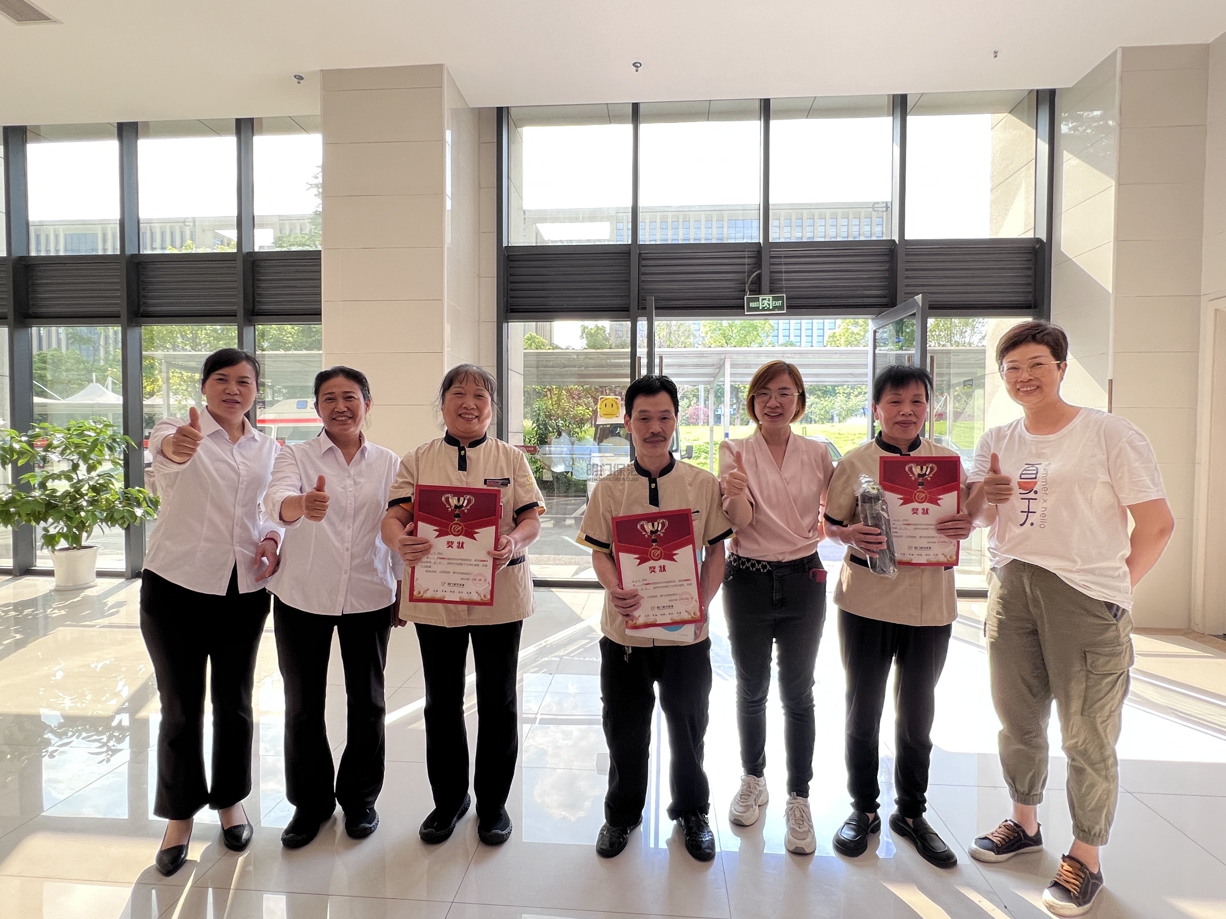 下面是我们的管理人员与获奖人员的留影合照,还有全体人员的留影合照。大家脸上都洋溢着幸福快乐的笑容,都为自己的努力点赞,也为大家的付出点赞!