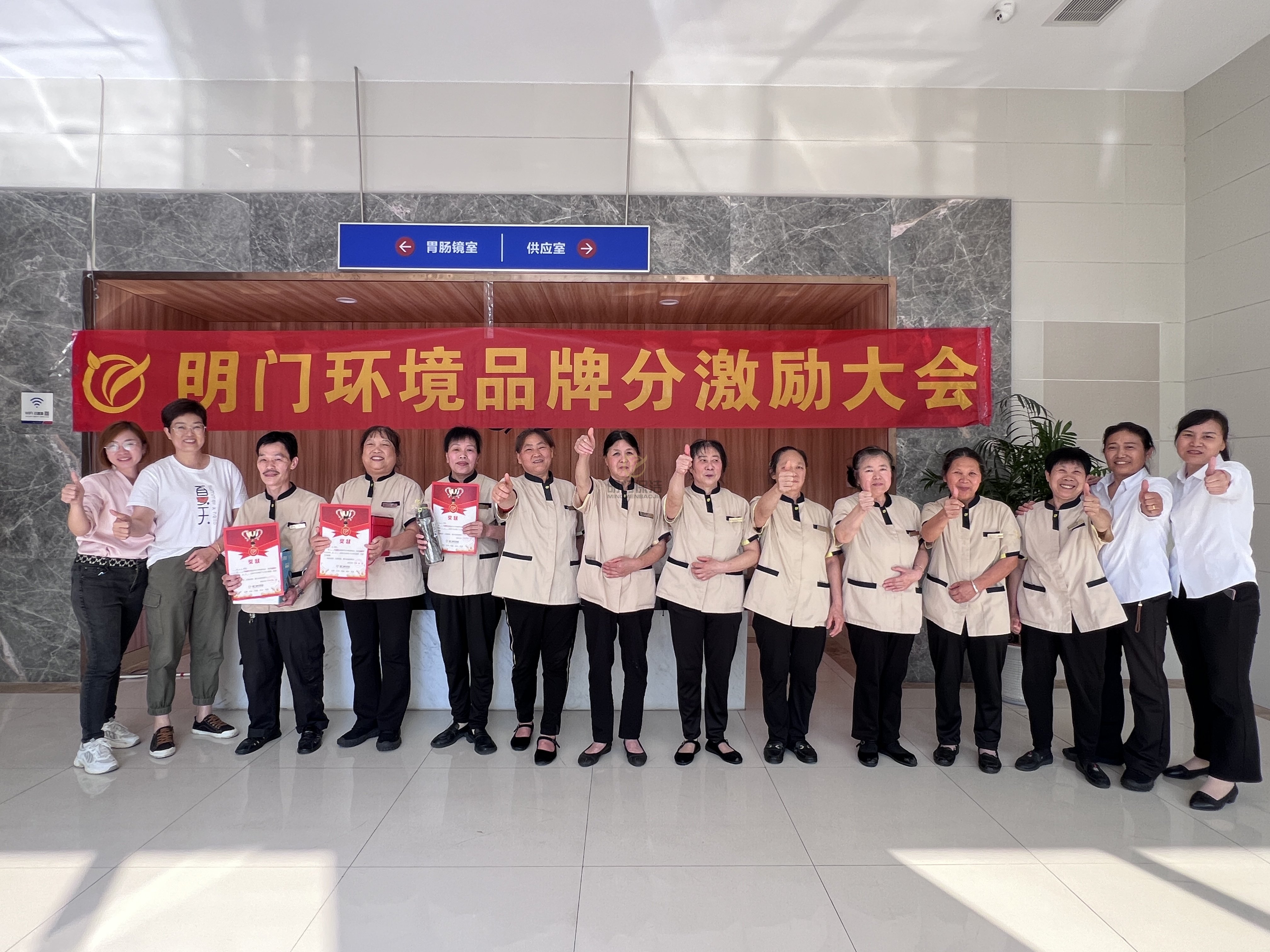为了弘扬公司"自信、专业、诚信、团结、感恩"的企业文化,我公司管理人员在医院保洁分部召开了1—3月份品牌分颁奖大会。在这几个月中,主动帮助他人,关心他人,在工作中创新,认真负责,从而得到同事认可的人,就能脱颖而出,获得大奖!本次品牌分颁奖大会在我们的项目经理的主持下正式开始。