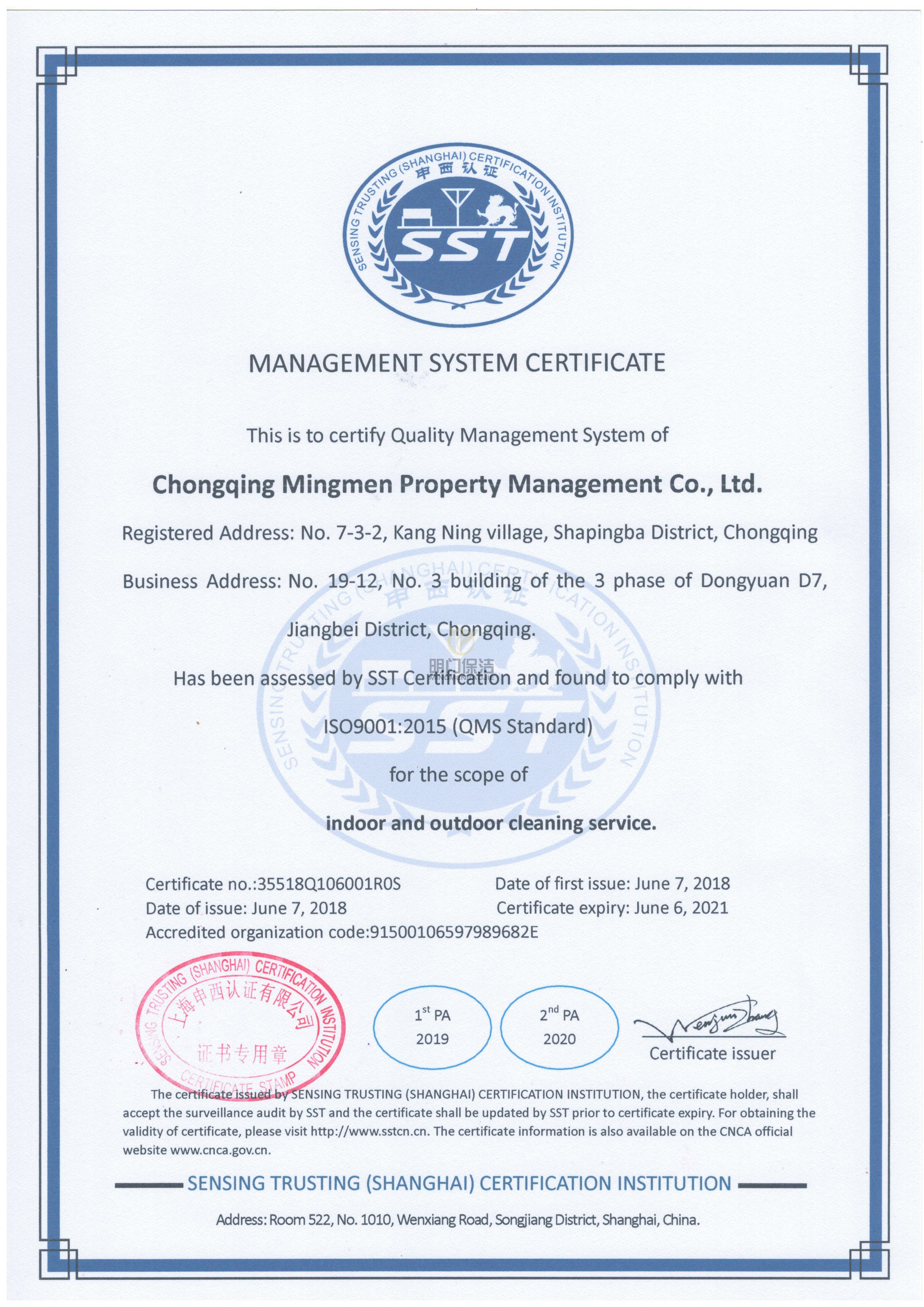 质量管理体系认证证书--英文版